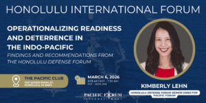 Kimberly Lehn is Senior Director of the Honolulu Defense Forum at the Pacific Forum. Kim is a national security professional with over 20 years of experience in the U.S. federal government and in the private sector.
